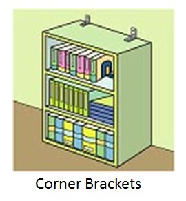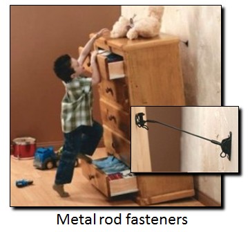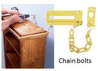 Heavier furniture such as bookcases and china cabinets should be secured with metal rod type fasteners, corner brackets, or even chain bolts!